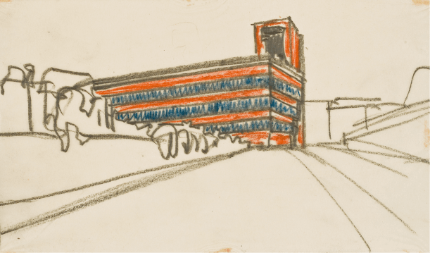 Wilhelm Deffke, Entwurf für den Umbau des Firmengebäudes von B. Reemtsma & Söhne, Erfurt, Variante ohne Turm, 1920/21